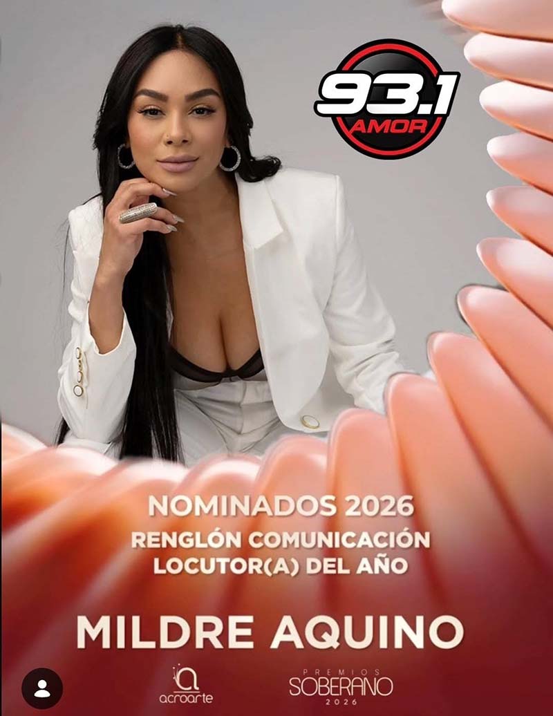 La comunicadora dominicana Mildre Aquino continúa consolidando su proyección internacional tras ser nominada como Locutor del Año en la 41.ª edición de los Premios Soberano 2026, el máximo reconocimiento al arte y la comunicación en la República Dominicana y el Caribe.
