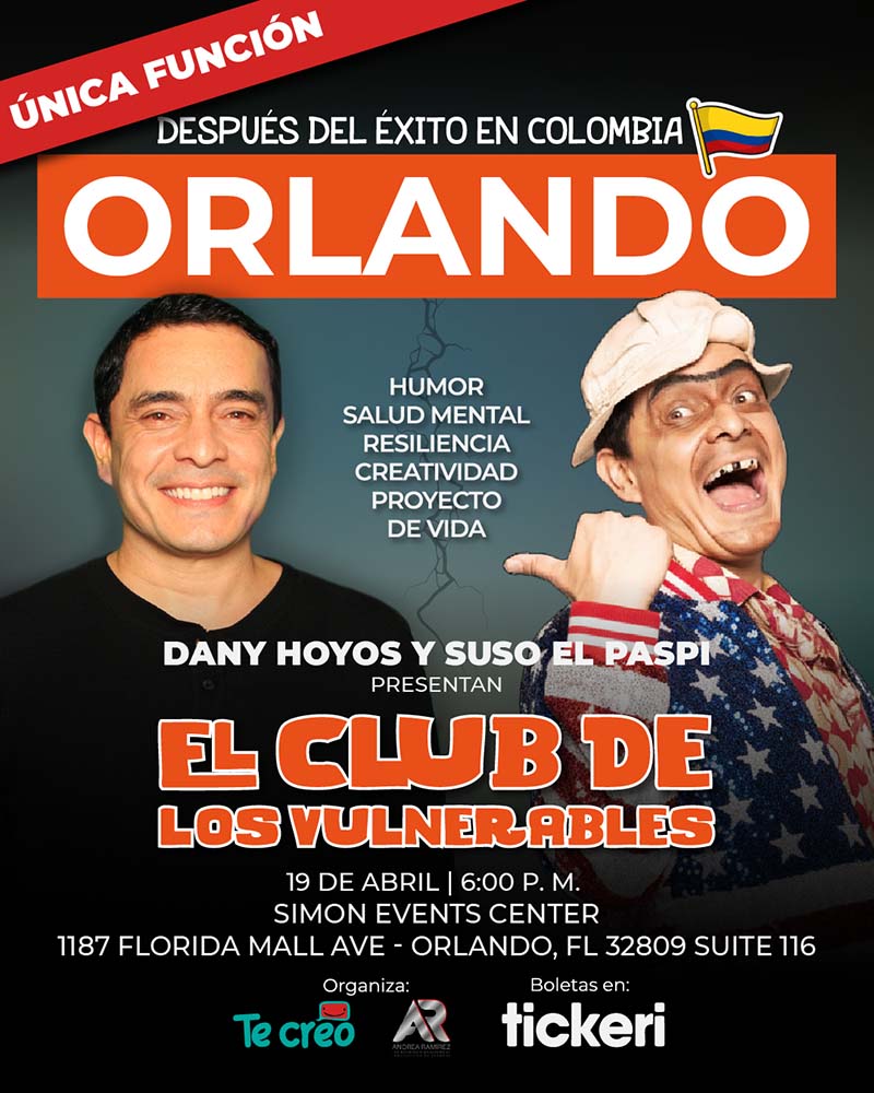 El comediante colombiano Dany Alejandro Hoyos, creador e intérprete del querido personaje Suso el Paspi, llegará por primera vez a Florida con su espectáculo “El Club de los Vulnerables”, una propuesta escénica única que mezcla comedia, reflexión y conversaciones abiertas sobre salud mental. El tour comenzará el 17 de abril en Miami, continuará el 18 de abril en Tampa y finalizará el 19 de abril en Orlando, llevando a las audiencias una experiencia en vivo que combina humor, historias personales y una profunda conexión emocional con el público.