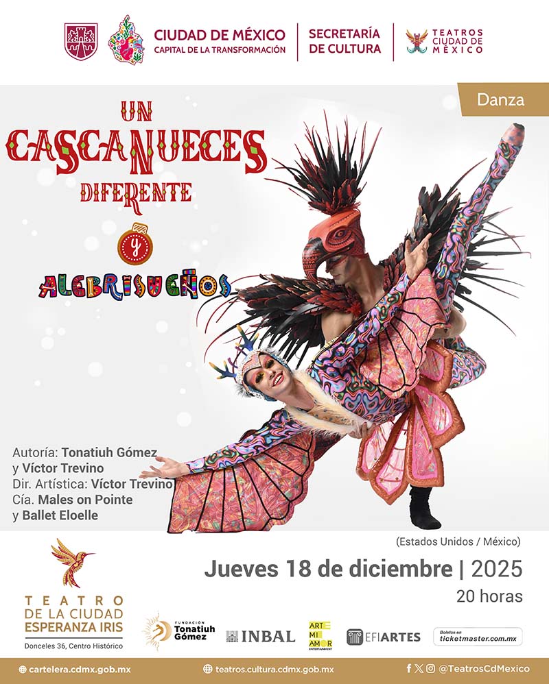 Un Cascanueces diferente & AlebriSueños, a cargo de las compañías Males on Pointe y Ballet Eloelle, se presentará el jueves 18 de diciembre a las 20:00 h en el Teatro de la Ciudad Esperanza Iris (Donceles 36, Centro Histórico).